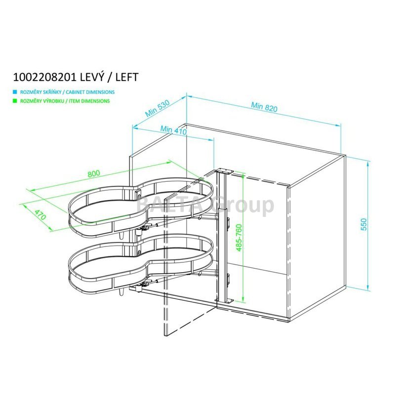Rohová výsuvná police WIRELI Elegance - levá, 800x470x485-760mm, bílá, chrom (1002208201)