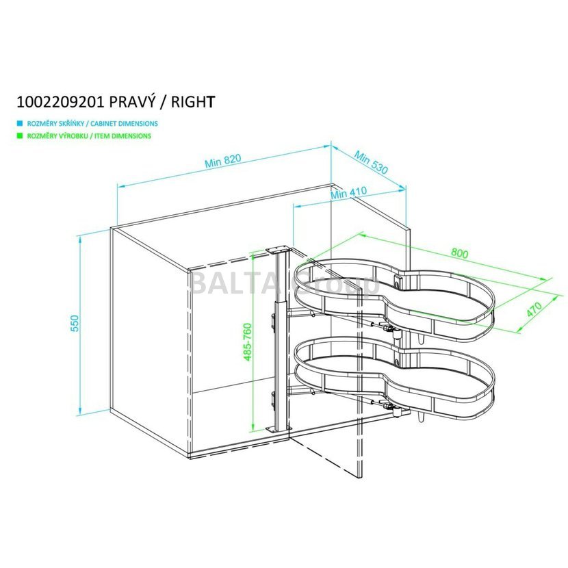 Rohová výsuvná police WIRELI Elegance - pravá, 800x470x485-760mm, bílá, chrom (1002209201)