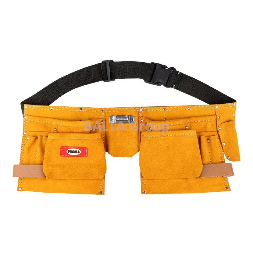 Nářaďový pás Proma RPI-413 je spolehlivým parťákem jak pro profesionální řemeslníky, tak pro domácí kutily. Je navržen tak, aby usnadnil organizaci vašeho nářadí, pomůcek a drobného příslušenství, jako jsou hřebíky a šrouby. Díky široké škále kapes na drobný materiál a praktickým poutkům pro kladiva a podobné nástroje máte vše důležité neustále po ruce. Tento pás je vyroben z kvalitní kůže, což zajišťuje odolnost a dlouhou životnost. Jeho pohodlné nošení kolem pasu je zajištěno nastavitelným opaskem, který se přizpůsobí vašim potřebám. S koženým nářaďovým pásem Proma RPI-413 bude manipulace s nářadím jednodušší a efektivnější než kdy dříve.
