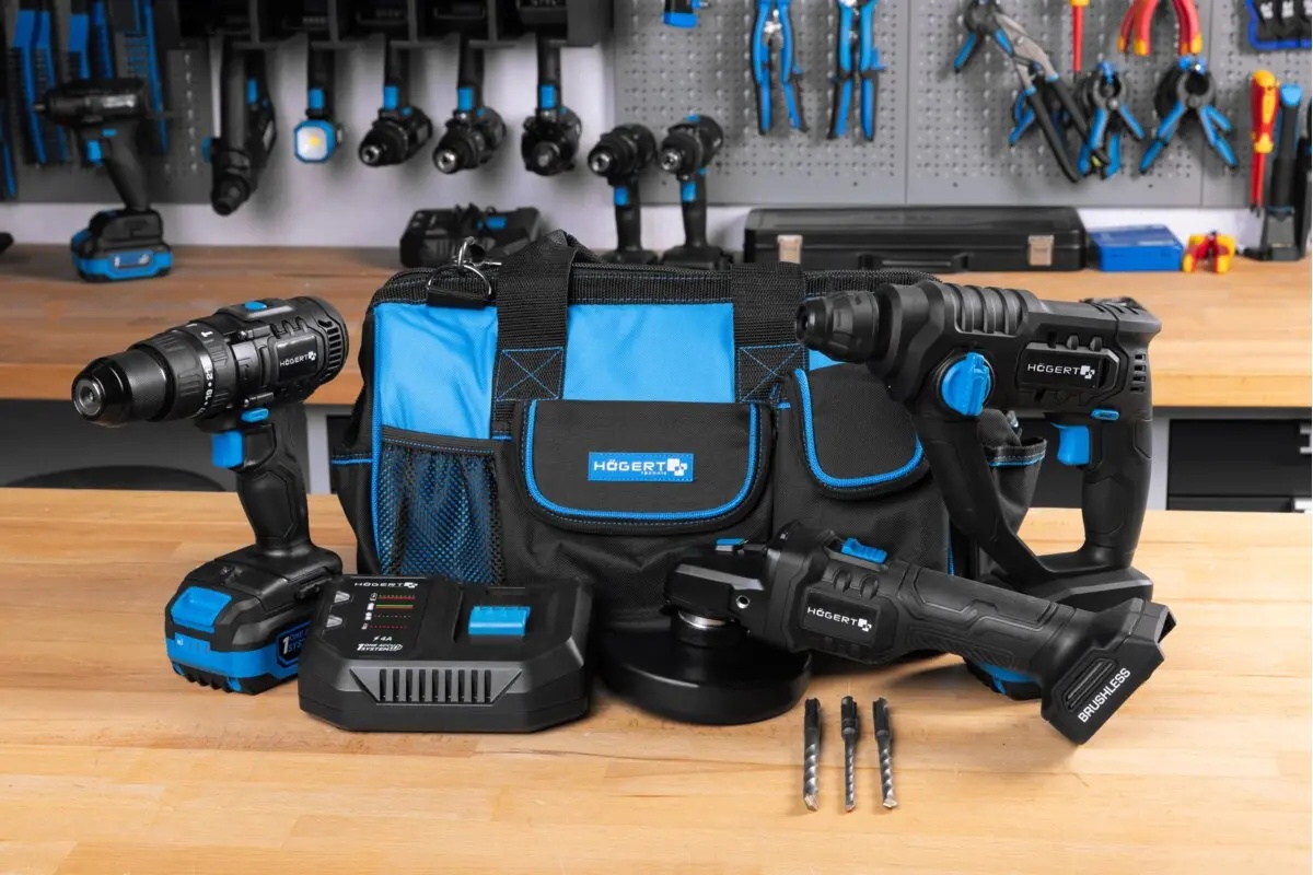 Praktická sada akumulátorového elektrického nářadí zabalená v praktické tašce.