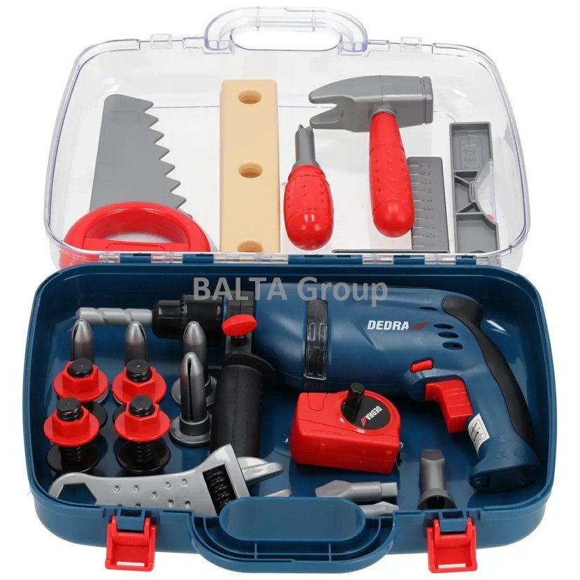 Kromě nářadí sada obsahuje řadu doplňků, jako jsou vrtáky a vrtací korunky, a příslušenství, jako je svinovací metr, ruční pilka a vodováha, díky nimž se každé dítě bude cítit jako skutečný kutil. Celá sada je navíc zabalena v kufříku podobném těm, ve kterých je uloženo profesionální elektrické nářadí, což ještě více zvyšuje realističnost zábavy.