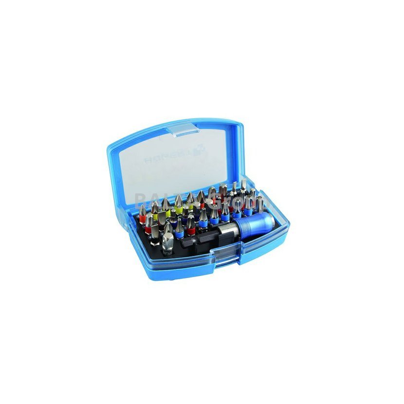Sada příslušenství a bitů používaných v síťových a akumulátorových vrtačkách a rázových utahovácích.