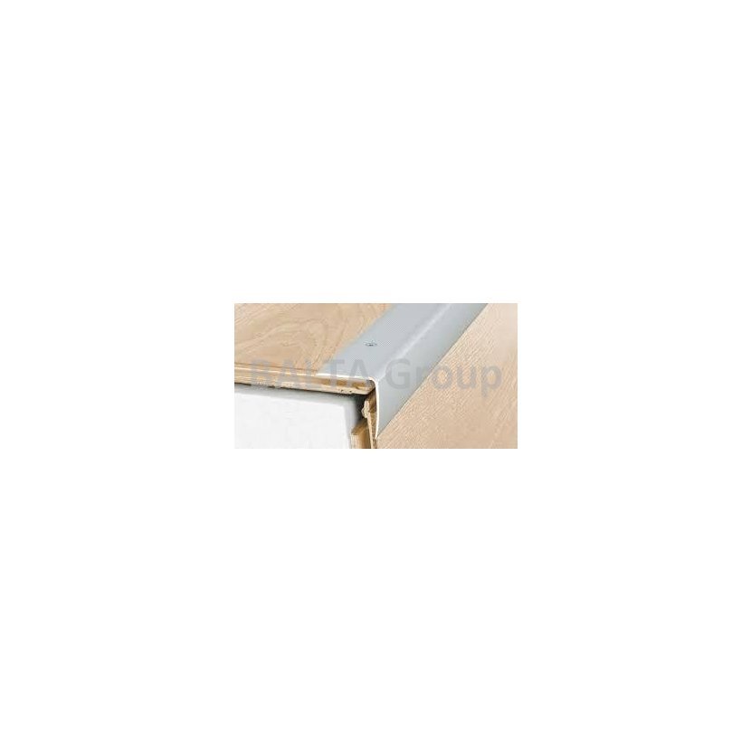 Schodový pofil 35x35 mm s jemným zoubkováním. Otvory šroubů jsou posunuty dovnitř schodů pro ochranu proti odlomení hrany schodu během montáže i provozu.