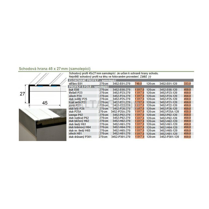 schodová hrana 45*27 | s folií -270cm / samolepící