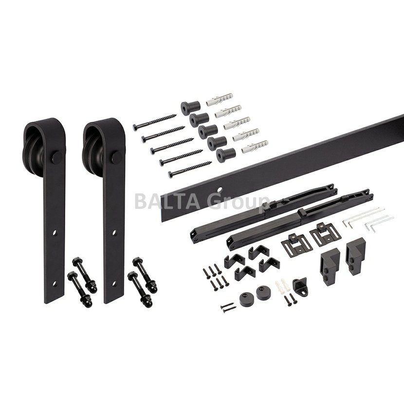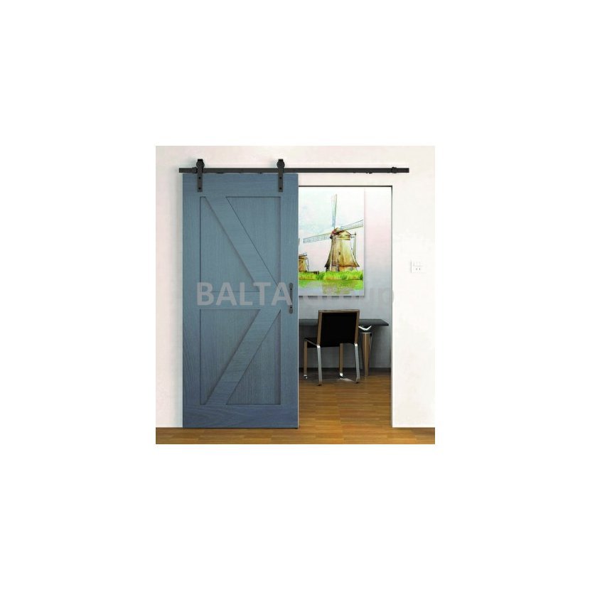 Sada kování pro horní vedení rustikálních dveří. Nosnost 80kg. Sada obsahuje: kolečka spojovací materiál do stěny spojovací materiál k vedení koncové zarážky vodící trn horní vedení. Vzdálenost vrchní části horního vedení od stropu musí být min. 110 mm.