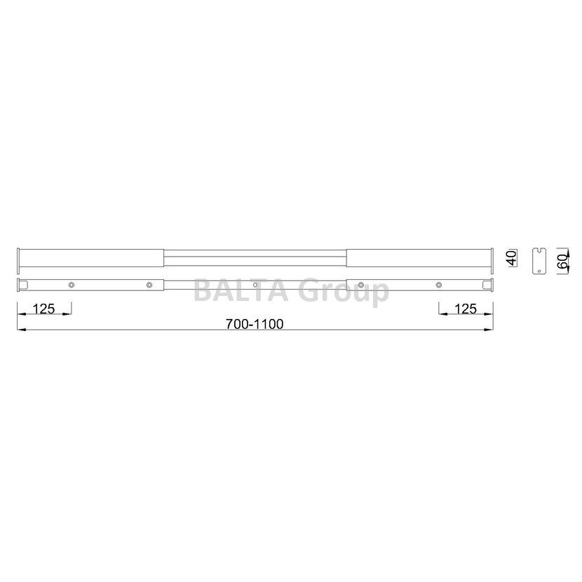 Rozměry: 700–1100x40x60H