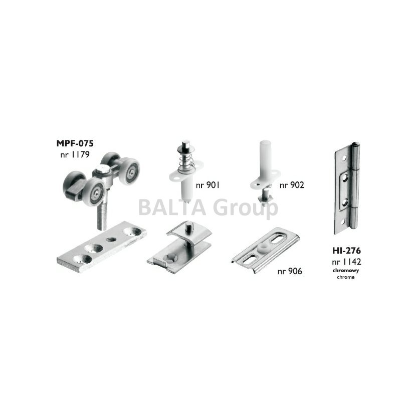 horní Kolečko 1179 - 1x, uchycení kolečka 1114 - 1x, horní Osazení 909 - 1x, horní vodítko 901 - 1x, Spodní vodítko 902 - 1x, Spodní Osazení 906 - 1x, Závěs křídlový 1142 - 3x