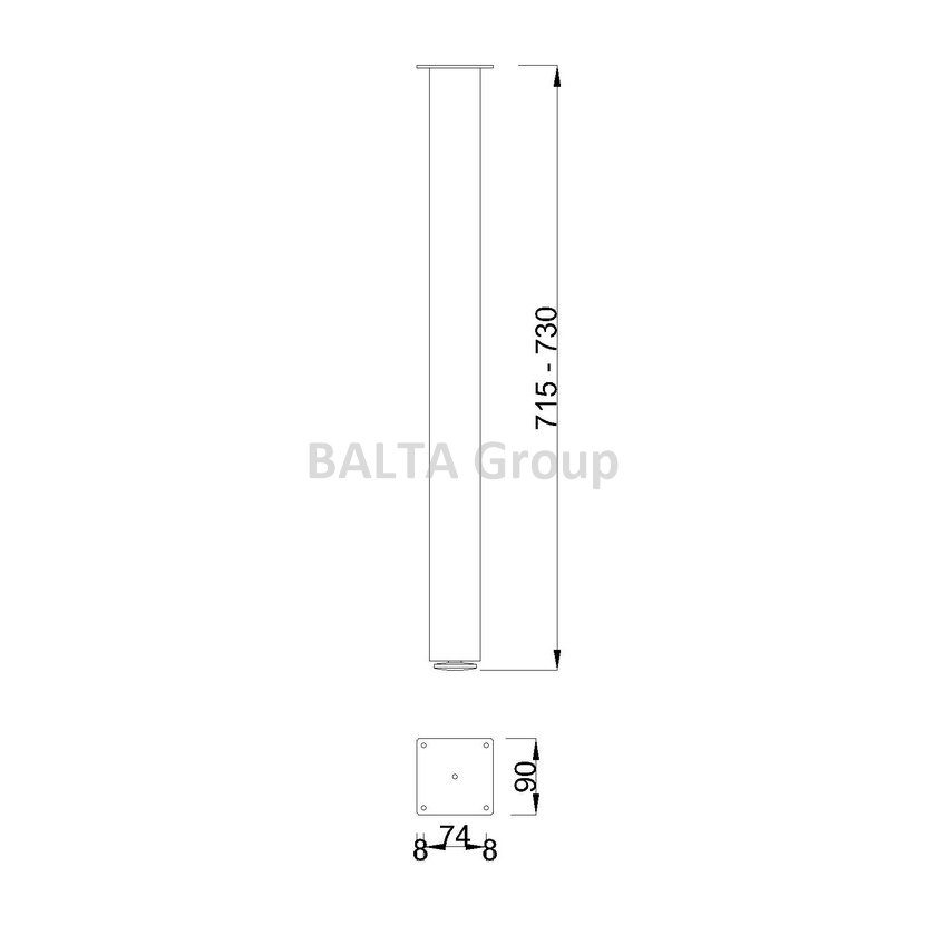 Stol. noha G5 ST 602 Noha hranatá 60x60 mm patka pro připevnění90x90 mm Rozměry: 60x60x715–730H Pro tloušťku stolové desky maximálně 20 - 25 mm rektifikace +15mm Barvy: Stříbrná RAL 9006 – skladem u dodavatele Antracit RAL 7012 – dodání do 5 týdnů (min.odběr 4ks) Bílá RAL 9016 – skladem u dodavatele Černá RAL 9005 – skladem u dodavatele
