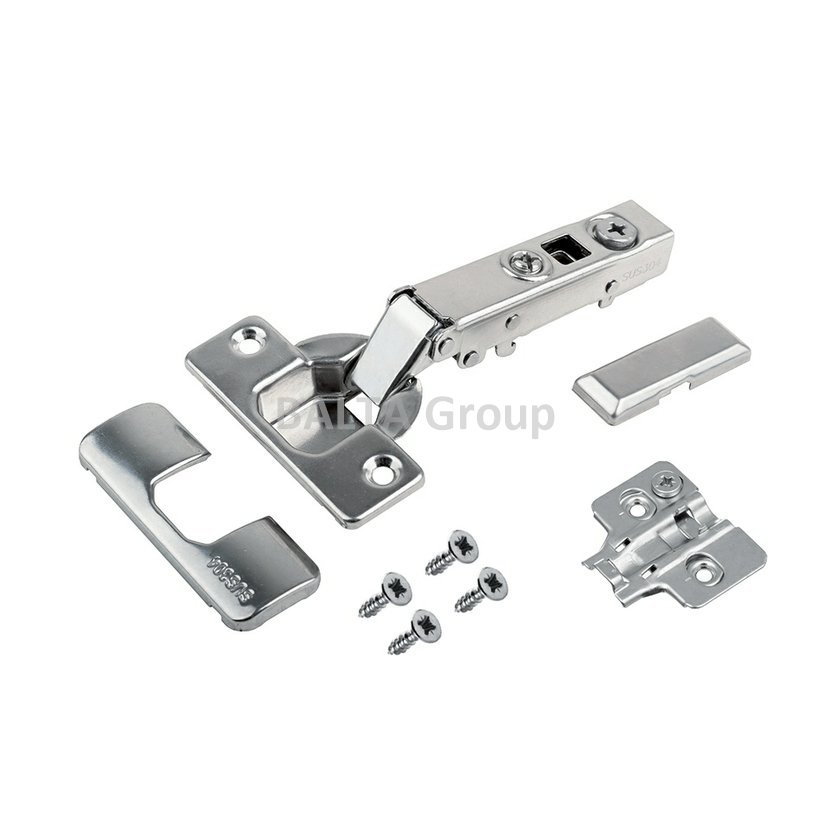 Nerezový komplet - klipový závěs naložený na vrut s integrovaným tlumením, s 3D podložkou H0, s krytkami ramínka i misky a s nerezovými vruty (4ks). Úhel otevření 110°. Vrtání misky O35mm, vrtací obrazec 45/9.5mm. Seřízení mezery mezi dveřmi a korpusem pomocí excentru. Vhodné do vlhkého prostředí s vyšší pravděpodobností koroze.