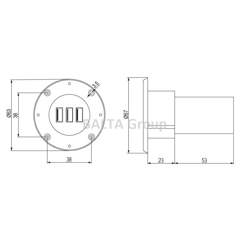 Nabíjení 5V, 3100mA Montážní otvor průměr 46mm Možnosti provedení: ( není-li stále vámi vybraná varianta v nabídce – napište do poznámky v závěru objednávky) Barva: bílá, černá