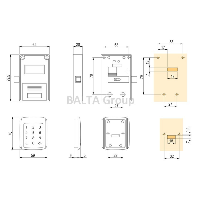 Sada obsahuje: 1 x klávesnice + pouzdro na baterie s kabelem 2 x šroub pro klávesnici 4 x šroub pro pouzdro na baterie 2 x šroub pro podložku 1 x plastová podložka Orientace zámku : PRAVÝ