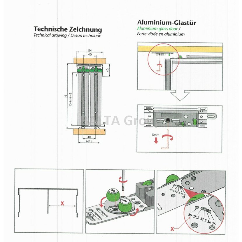 tlumič kompatibilní se systémem GEP Tlumí dveře na obou stranách a zabraňuje nárazu do stěn skříně na jejím konci balení 2 kusy pro hmotnost křídla 30-50kg