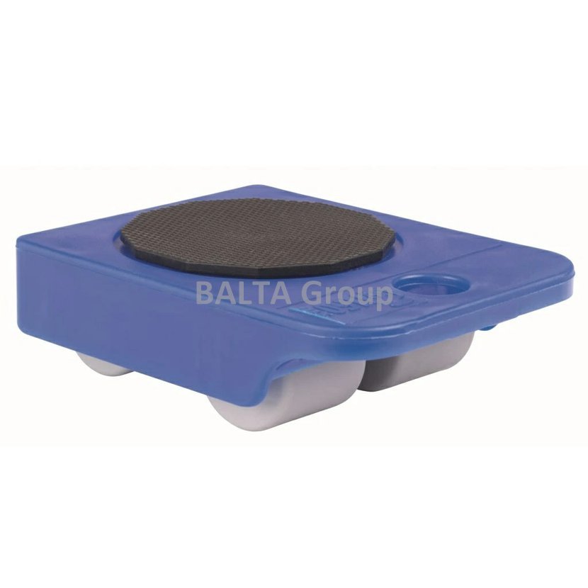 Transportní destička/plošina pro tvrdé podlahy o rozměru 102 x 77 mm s nosností až 150 kg. Plastová destička opatřena černým otočným diskem a čtyřmi zabudovanými kolečky o průměru 25 mm.