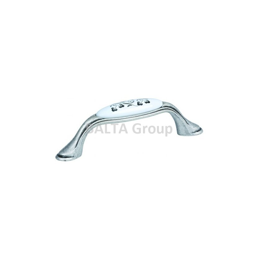 úchytka povrchová úprava starostříbro/ porcelán bílý/květinka stříbrná, rozteč 96 mm, délka 127 mm, šířka 26 mm, výška 36 mm. šroubky nejsou součástí balení