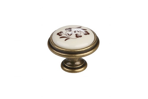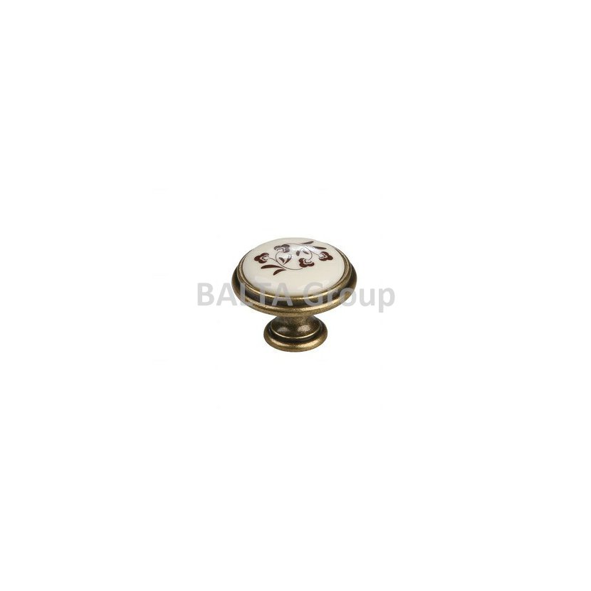 knop povrchová úprava staromosaz/porcelán béžový/květinka hnědá, průměr 35 mm, výška 27 mm. šroubky nejsou součástí balení.