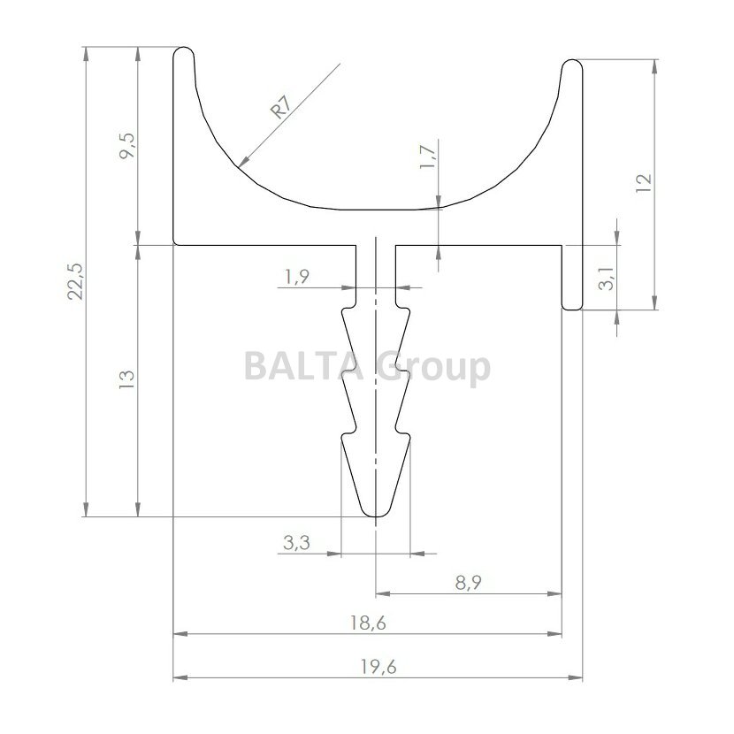 Narážecí úchytkový profil Maritta do hrany Pro tloušťku dvířek 18 mm délka profilu 3000 mm, použitelná délka 2900 mm Lze kombinovat s profily Paolo a Juvio