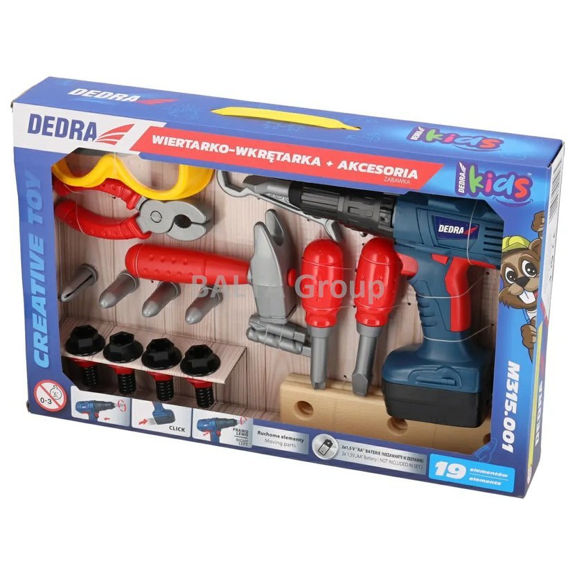 Sada obsahuje kromě přístroje i celou řadu příslušenství, jako jsou vrtáky nebo ochranné brýle - každé dítě se tak bude cítit jako skutečný kutil.