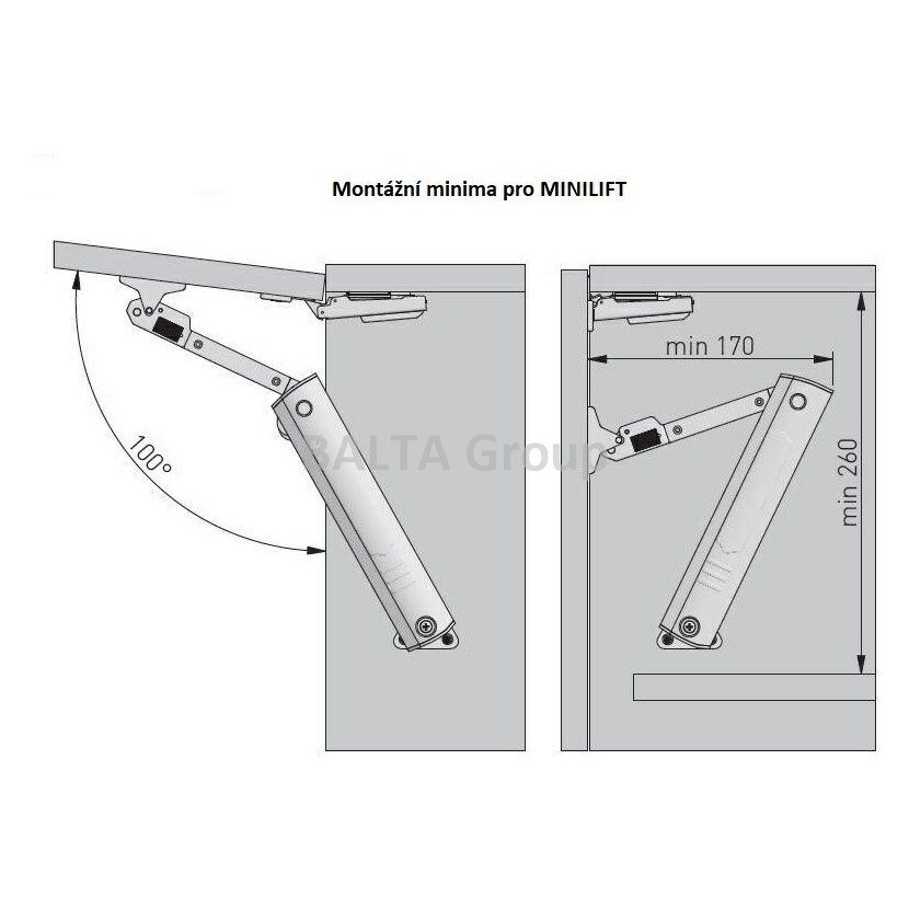 Výklop MINILIFT je určen pro dvířka o hmotnosti 4-6 kg.