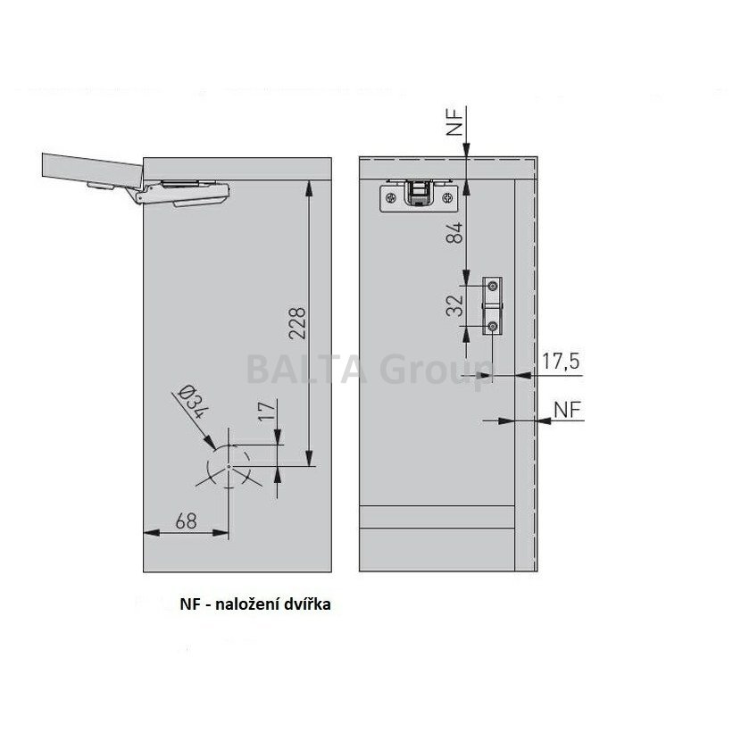 Pozor! ke správné funkci musí být použit tlumený závěs 2x (0423024|1) nebo (0434002|1)