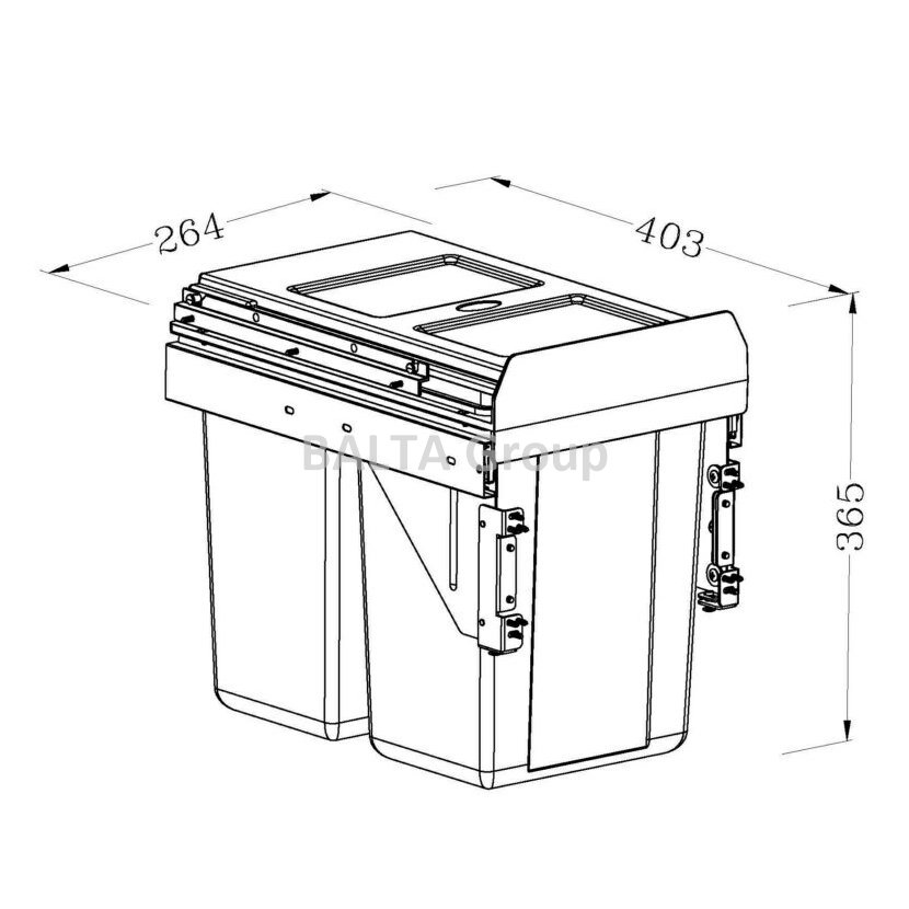 Výsuvný odpadkový 2-koš s úchyty dvířek, 2x11 l, K30 antracit (1007168602)