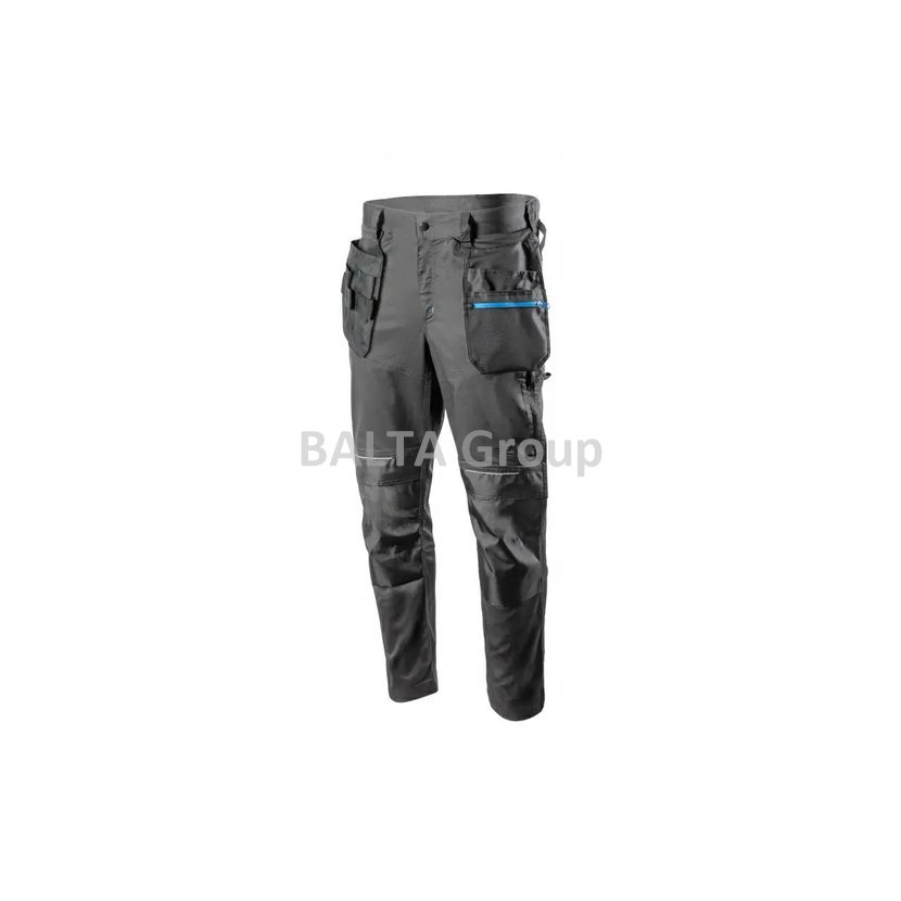 Popis výrobku Profesionální pánské pracovní kalhoty WURNITZ vyrobené z nejkvalitnějších materiálů. Kromě vysoké odolností poskytují také vysoký komfort při nošení. Při jejich výrobě je kladen zvláštní důraz na funkčnost a bezpečnost. Díky větší pružnosti se kalhoty WURNITZ osvědčí při mnoha druzích práce, kdy neomezují pohyby uživatelů, a reflexní prvky pak zajišťují bezpečnost při práci za tmy. U kapes na nářadí a na kolenou je zesílení z materiálu OXFORD, navíc lze nepoužívané kapsy snadno odpojit. Jsou k dostání v tmavošedé barvě s modrými prvky a v široké škále velikostí (S až 3XL). Byly vyvinuty pro profesionály. Optimálně se hodí pro pracovníky ve výrobě, na stavbě, v dopravě a automechaniky. Osvědčí se při servisu, montáži a technických činnostech. Charakteristika . pružný materiál zajišťující volnost pohybu; . gramáž materiálu 220 g/m2; . materiál: 60% polyester, 38% bavlna, 2% elastan; . splňují normu EN ISO 13688:2013; . odpínací kapsy na nářadí zesílené materiálem 300D OXFORD; . pružný opasek; . kapsy na nákoleníky zesílené materiálem 300D OXFORD; . pružný panel v rozkroku; . 2 × zadní kapsa – 1 × na zip, 1 × na suchý zip; . 1 × boční kapsa na zip; . 1 × kapsa na metr z materiálu OXFORD; . poutka na nářadí; . trojité švy; . prodloužené nohavice; . reflexní prvky vpředu a vzadu